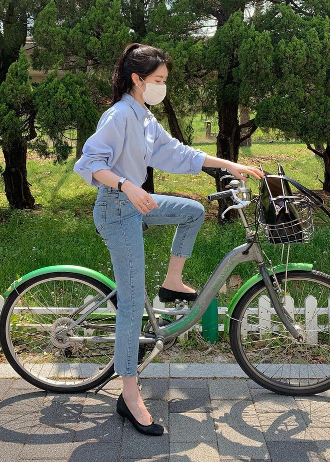 Với chiều dài này, chân bạn sẽ có một khoảng trống từ mắt cá chân đến mu bàn chân, nhìn vào tổng thể trông sẽ thoáng mắt, đồng thời cũng không bị chê là luộm thuộm nếu bạn có mang giày bệt. Thay vì chọn quần ống túm có phần đứng đắn và công sở quá thì quần có độ loe nhẹ sẽ hoàn hảo hơn đó, trông bạn sẽ trẻ trung hẳn ra cho xem.