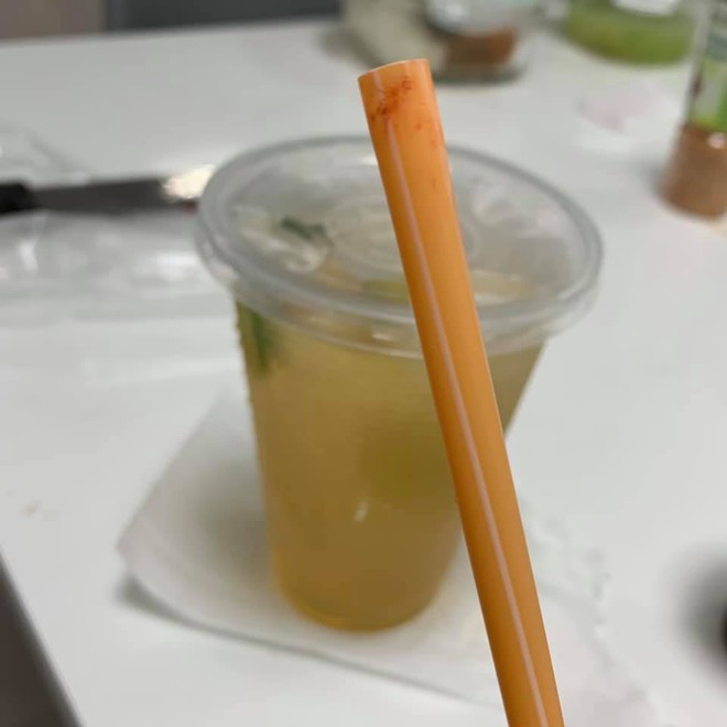 Theo đó, cô gái trong bài đã dùng 1 ứng dụng giao hàng, đặt phần bún đậu đầy đủ có giá 35k, ly trà quất có giá 5k. Khi nhận hàng về, vị khách này bị sốc nặng khi phát hiện cửa hàng giao cho 1 cái ống hút có dấu hiệu đã qua sử dụng. Bên trên miệng ống có vết son môi, kèm theo đó là vết nứt do bị cắn vào đầu ống hút.