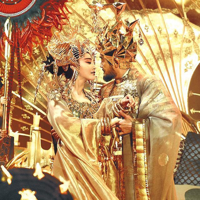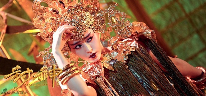 Trong phim, người đẹp như dát cả tấn vàng trên người, từ mũi mão đến vòng cổ, từ váy áo đến vòng tay... nhìn đâu cũng toả ra hào quang và đẫm mùi tiền! Nhìn vào tạo hình rực rỡ của nàng Đát Kỷ, không ít người phải kêu lên vì quá chói mắt. Tuy nhiên, chị giàu thì chị chơi, chịu không chịu buộc chịu, ha!