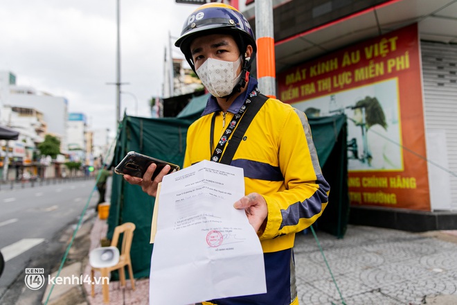 Anh Phan Tất Đạt (22 tuổi) vui mừng khi là một trong những người đầu tiên hoàn thành việc lấy mẫu và nhận được giấy xét nghiệm. "Có giấy rồi yên tâm bật app lên nhận đơn, cũng yên tâm được phần nào cho bản thân và người nhận", Đạt chia sẻ
