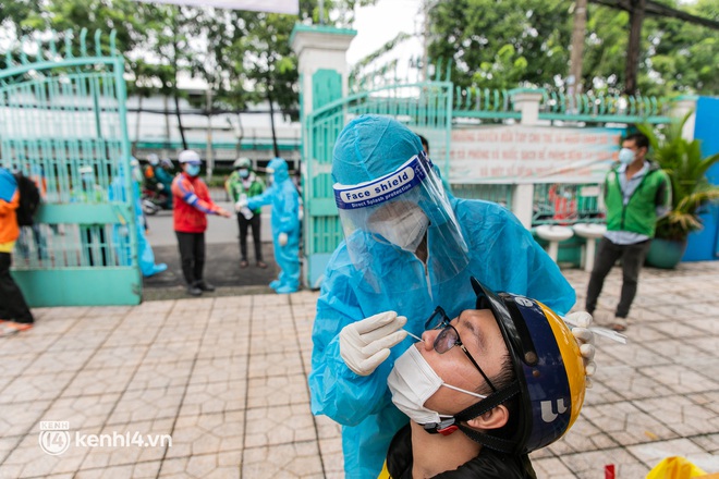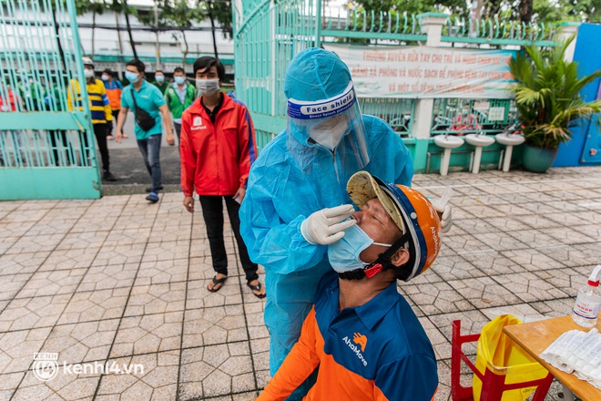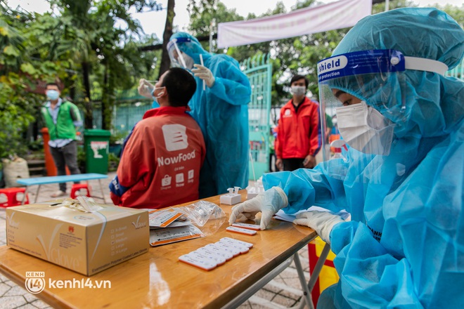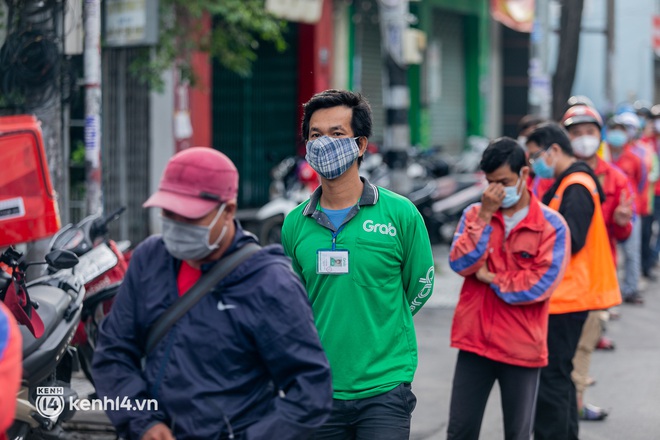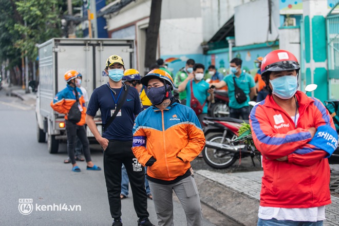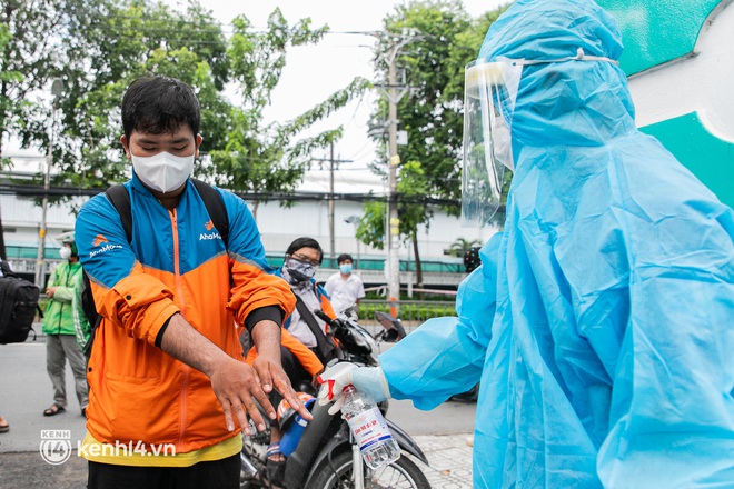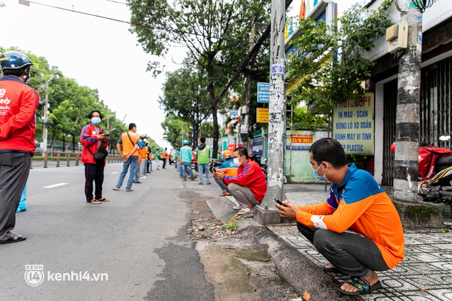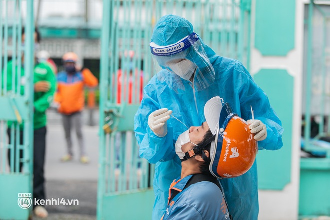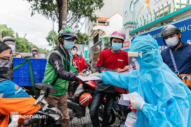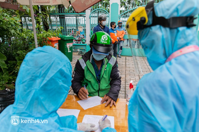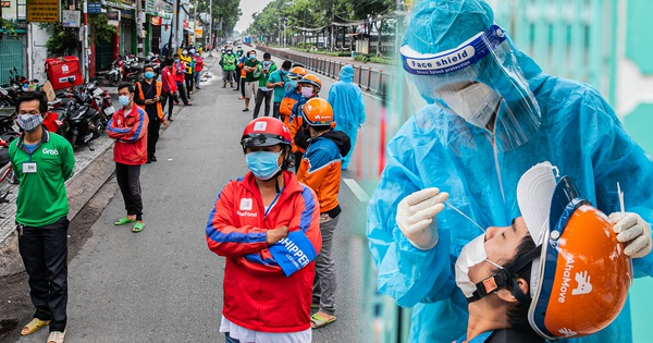 Ảnh, clip: Shipper tại TP.HCM xếp hàng dài chờ xét nghiệm trong ngày đầu được hoạt động trở lại