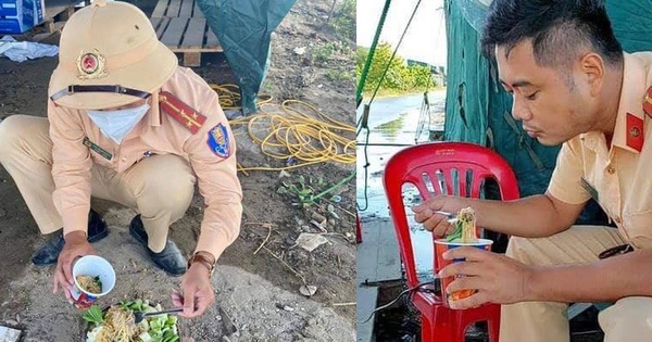 Có lẽ vì thế, xem bức ảnh chụp khoảnh khắc các chiến sĩ CSGT tại TP. Vinh ăn nồi mì tôm "độn toàn rau", nhiều người đã không khỏi cay khóe mắt. Nồi mì được nấu trên chiếc bếp tự chế bằng mấy viên gạch kê còn hộp mì được trưng dụng để làm bát. Các chiến sĩ tỏ ra vui vẻ, hạnh phúc với bữa ăn ngon lành này.