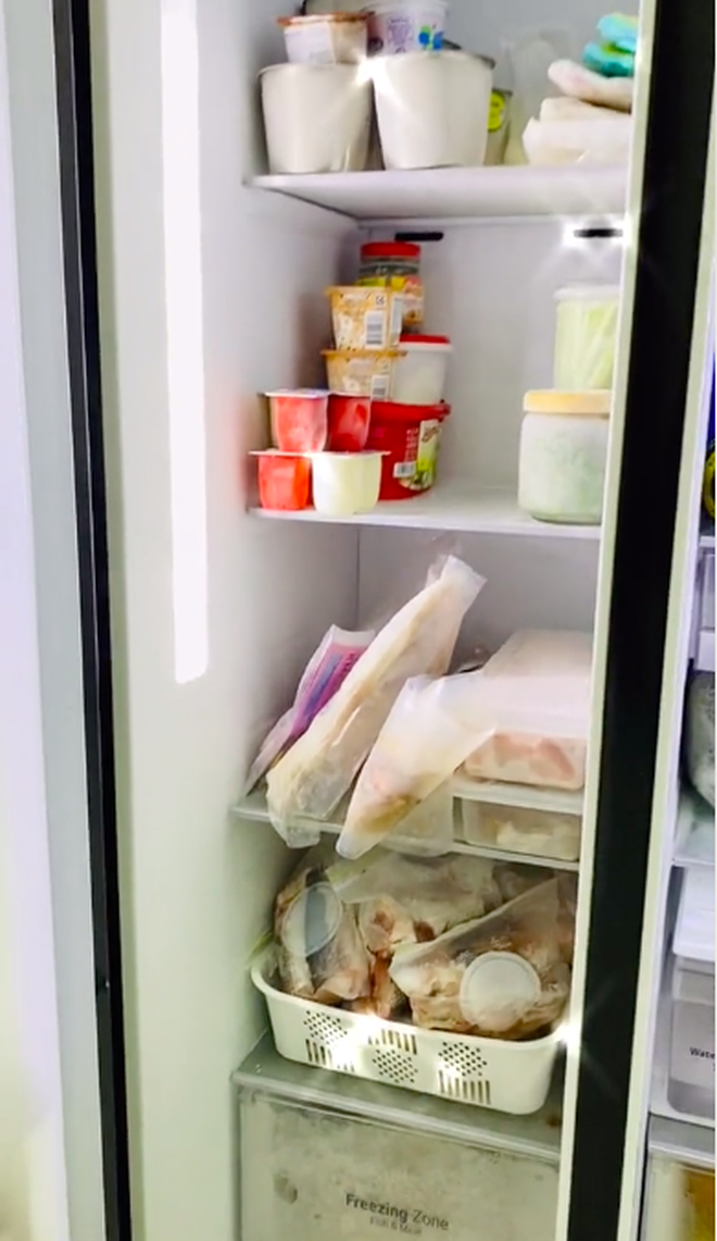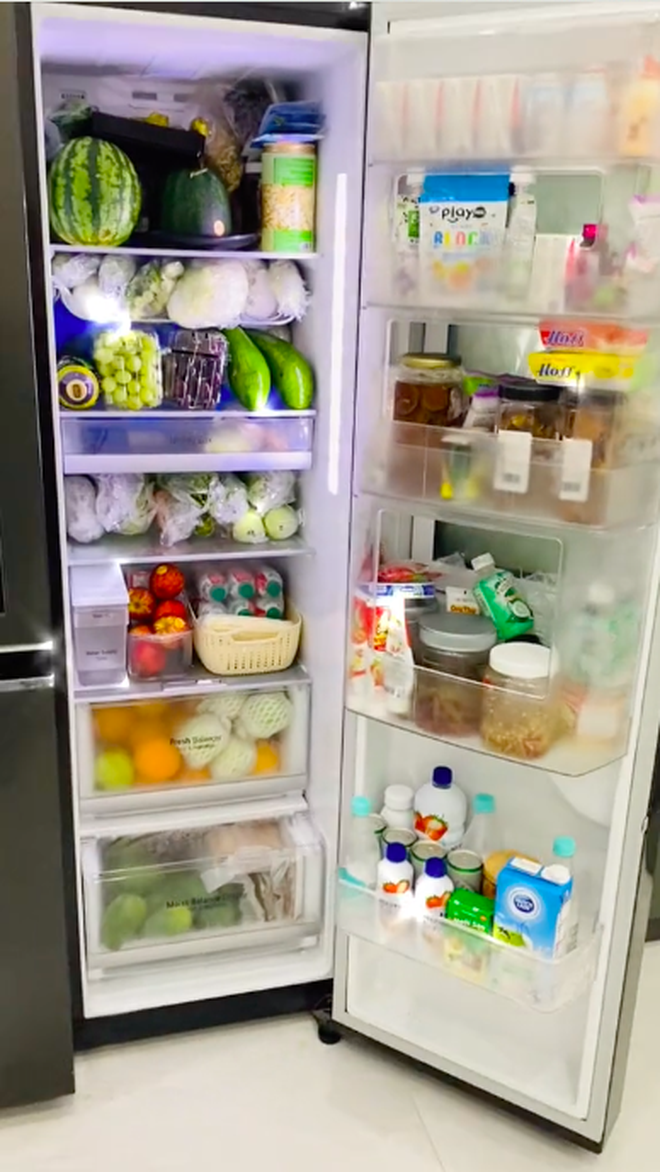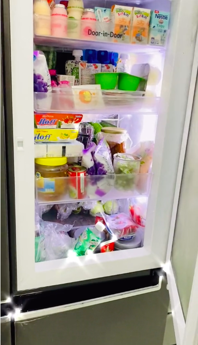 Đầu tiên, xét về những thứ có trong tủ lạnh thì cũng đủ thấy cô gái này thuộc team #nhà_giàu trong mùa dịch. Nói không ngoa chứ tủ nhà cô cứ như… nguyên cái chợ. Từ các loại sữa, đồ ngọt đến rau xanh, trái cây rồi thịt cá, đồ đông lạnh… hầu như đều có đủ.