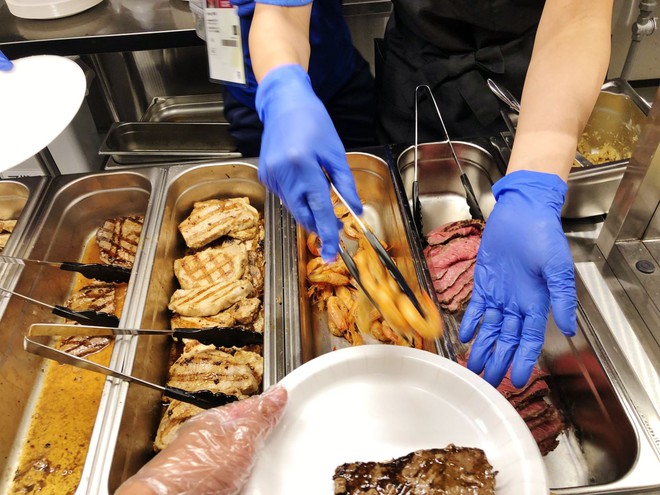 Các món đều được để trong khay riêng, đặc biệt khu vực bếp rất sạch sẽ, không hề có dấu vết dầu mỡ bám dính