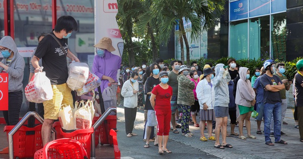 Sáng ngày 22/8, rất nhiều người dân TP.HCM đã đến xếp hàng ở các cửa hàng thực phẩm, siêu thị để được vào mua sắm hàng hóa từ sớm. Có nơi xếp hàng dài cả trăm mét, thậm chí xếp hàng cả trên cầu, hay nối dài đến tận trong hẻm.