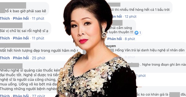 Tuy nhiên, điều gây chú ý là dưới phần bình luận, rất đông dân mạng bỗng ùa vào công kích NS Hồng Vân. Nhiều người còn sử dụng những từ ngữ mỉa mai nặng nề, nhắc lại lùm xùm quảng cáo của nữ nghệ sĩ. Thậm chí, một số trường hợp còn gay gắt đòi tước danh hiệu nghệ sĩ nhân dân của Hồng Vân.