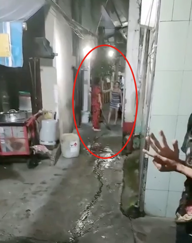 Theo đó, dù trời đã tối nhưng người phụ nữ này vẫn đứng trong ngõ liên tục cự cãi với một người đàn ông cởi trần sinh sống cùng xóm. Trong lúc bực tức, người đàn ông này còn quăng cả chiếc ghế nhựa xuống đường để xả giận.