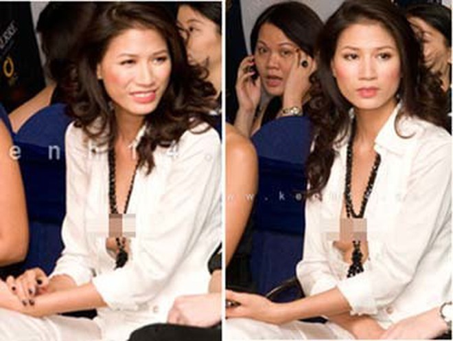 Đêm tiệc sắc đẹp diễn ra tối 14/10/2011 tại Hà Nội lưu lại những ấn tượng về màn lộ miếng dán nhũ hoa của ca sĩ Đoan Trang. Trong tà váy maxi mềm mại và lãng mạn, khuôn ngực khủng của nữ ca sĩ xô lệch khỏi vị trí ban đầu dẫn tới sự cố ngoài mong muốn