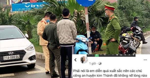Nội dung cụ thể: "Phải nói là em diễn quá xuất sắc nên các chú công an huyện Kim Thành không nỡ lòng nào phạt tiền em".