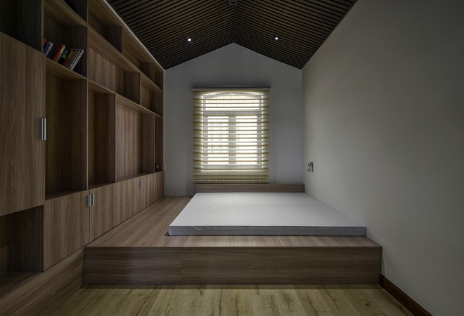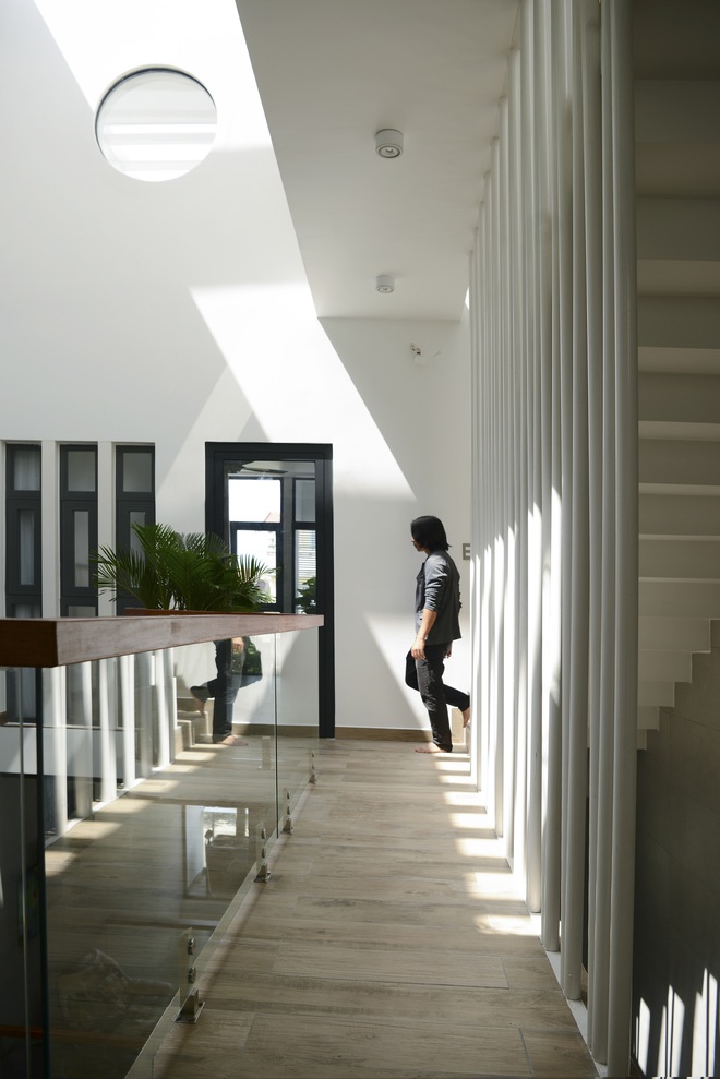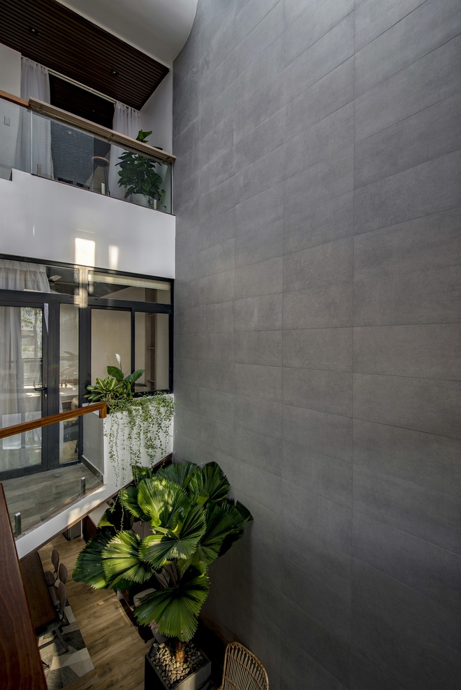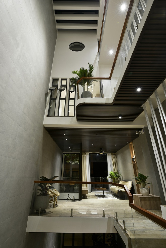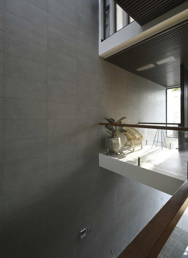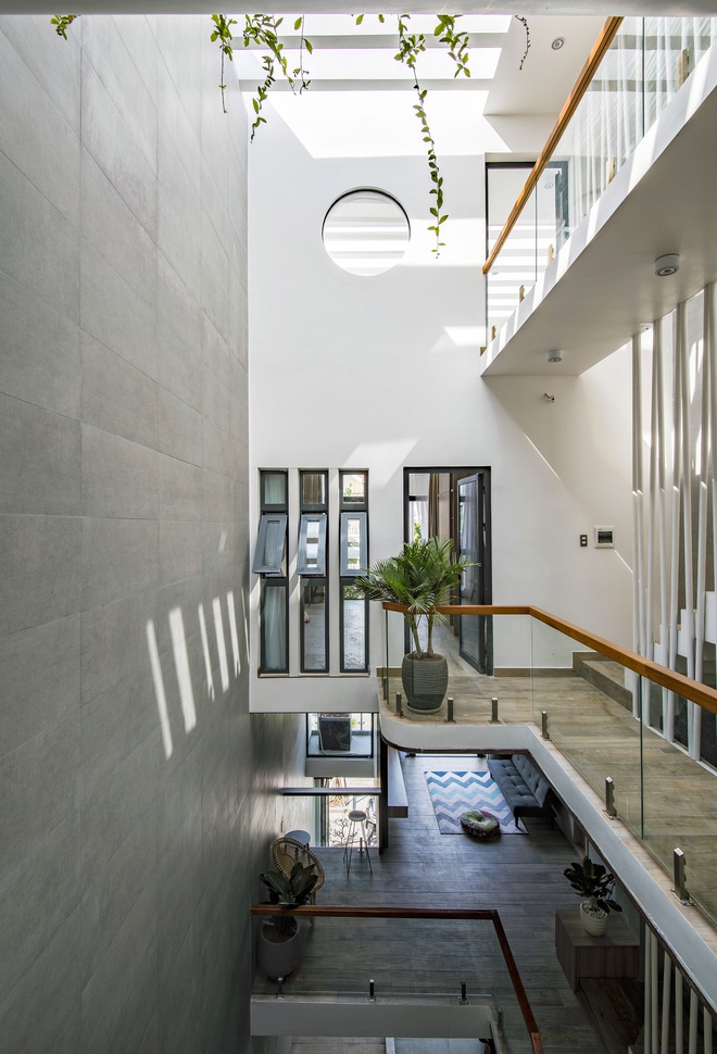 Thành viên trong gia đình có thể quan sát nhau dễ dàng nhờ khoảng trống thông tầng được đặt ở giữa căn nhà